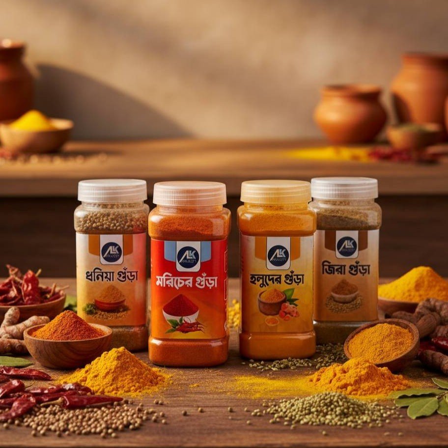 হলুদ, মরিচ, ধনিয়া ও জিরা গুঁড়া – যা দেবে প্রতিটি রান্নায় এক নতুন মাত্রা। 🌿